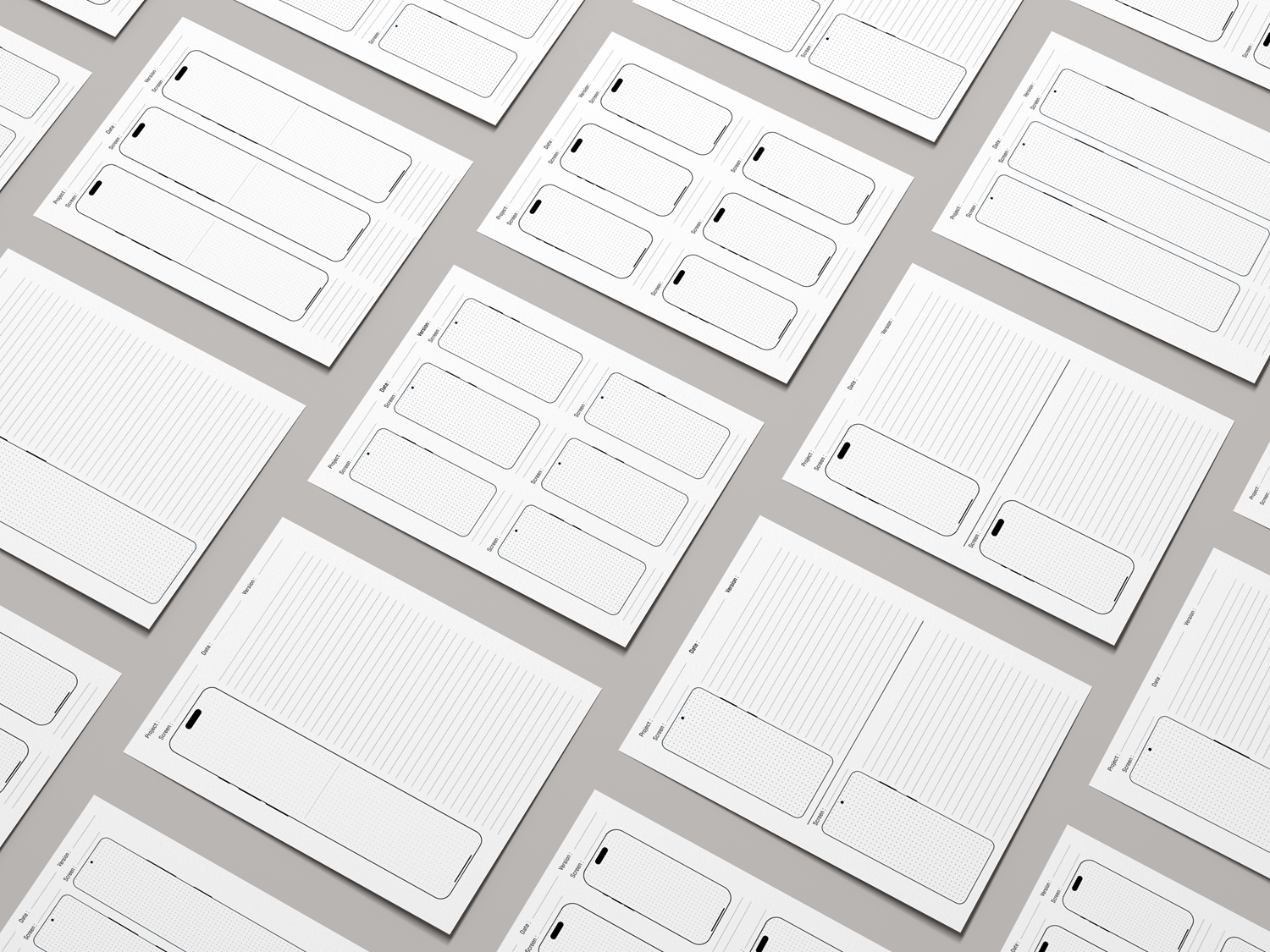Available in both A4 and Letter sizes, this sketchbook is ideal for brainstorming, planning, and refining mobile app designs. The pre-organized pages make it easy to keep track of project versions and screen iterations, providing a professional yet flexible framework.